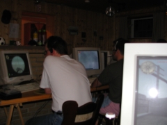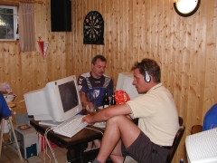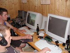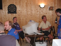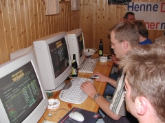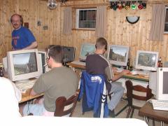 Es war mal wieder an der Zeit LanParty 6 - 30.05.2003- Die 9 Rechner sorgten für reichlich zusätzliche Hitze im Clubraum, was sicherlich mit ein Grund für den hohen Getränkekonsum ( 2 Kisten Hefe und 3 Kisten Bier ) war.